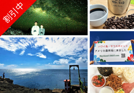 ハワイ島の南側そこには、アメリカ最南端の場所・サウスポイントをはじめ、南の果ての可愛いパン屋さん、本格的なコナコーヒー農園、溶岩が崩れてできた黒砂海岸!まだまだ魅力的なハワイ島がたくさん隠れています。見たことのないハワイ島を体験し、世界遺産のハワイ火山国立公園では、火口をはじめ、大自然の様子をたっぷりとご見学。