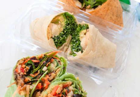 (チキンシーザーラップ、ベジラップ、スパイシーグリルドシュリンプラップ)